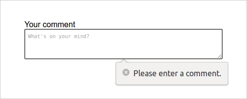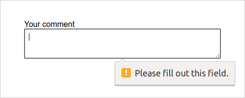 В таком случае, при отправке формы без комментариев, пользователю будет выводиться сообщение «Пожалуйста, введите комментарий». Вы, наверное, заметили, что я до сих пор ничего не говорил о стилях сообщений. Потому что на данный момент нет никакой возможности оформить их с помощью CSS. Раньше можно было воспользоваться селектором ::-webkit-validation-bubble для браузеров на WebKit, но он был удалён. Если вы действительно хотите оформить всплывающее окно, то вам нужно будет создать своё собственное. Но имейте в виду, что здесь есть много подводных камней, поэтому я советую использовать всплывающие окна по умолчанию.