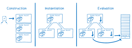 Для ES-модулей это происходит в три этапа.