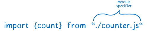 В этом случае используются операторы import. Одна часть оператора импорта называется спецификатором модуля. Он сообщает загрузчику, где он может найти каждый следующий модуль.