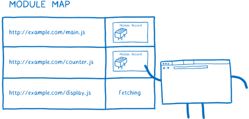 Загрузчик управляет этим кэшем с помощью так называемой карты модулей. Каждый глобальный модуль отслеживает свои модули в отдельной карте.