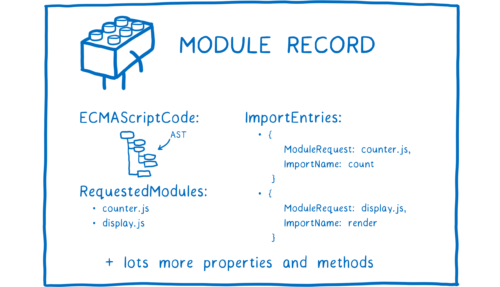 Но сами файлы не являются тем, что браузер может использовать. Ему необходимо разобрать все эти файлы, чтобы превратить их в структуры данных, называемые записями модулей (module records). Таким образом, он действительно узнает, что происходит в файле.