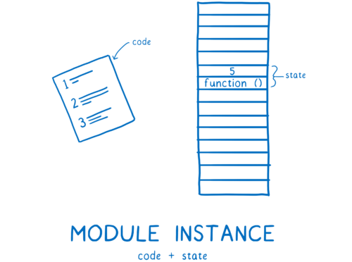 Таким образом, экземпляр модуля объединяет код (список инструкций) с состоянием (значениями всех переменных).