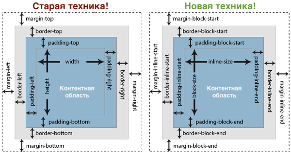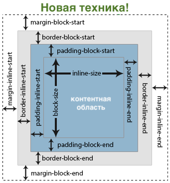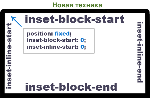Свойства, которые мы раньше использовали для позиционирования, top, bottom, left, right, превратились в новые свойства с префиксом inset: inset-block-start, inset-block-end, inset-inline-start, inset-inline-end.