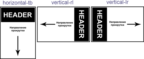 writing-mode: horizontal-tb— сверху вниз, как для английского (значение по умолчанию).writing-mode: vertical-rl— справа налево, для японского.writing-mode: vertical-lr— слева направо, для монгольского.