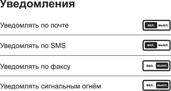 В примере с предыдущим переключателем подпись к нему описывает, что именно будет включено или выключено. Там, где не указано, что включается и выключается, сразу же возникает путаница: нужно ли после того, как я нажал на кнопку и включил что-то, снова на неё нажать, чтобы опять это выключить?